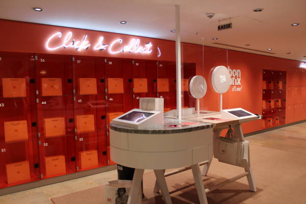 The store displays Bonprix’ entire assortment in women’s fashion that is available to buy, in one size. Each article is tagged with a digital fashion label that shows the current price, size range and a QR-code. The customer scans the QR-code of the items she wants to try on and/or buy and add it to her basket. The journey continues through the store, with the customer scanning and selecting articles of interest. When the selection is complete, the customer has a choice to try the clothes on or to purchase them immediately. In the latter case, the application will indicate when the items are ready in the so-called Fast Lane Box. They can be paid for in the application with PayPal or credit card or at the cashier’s.